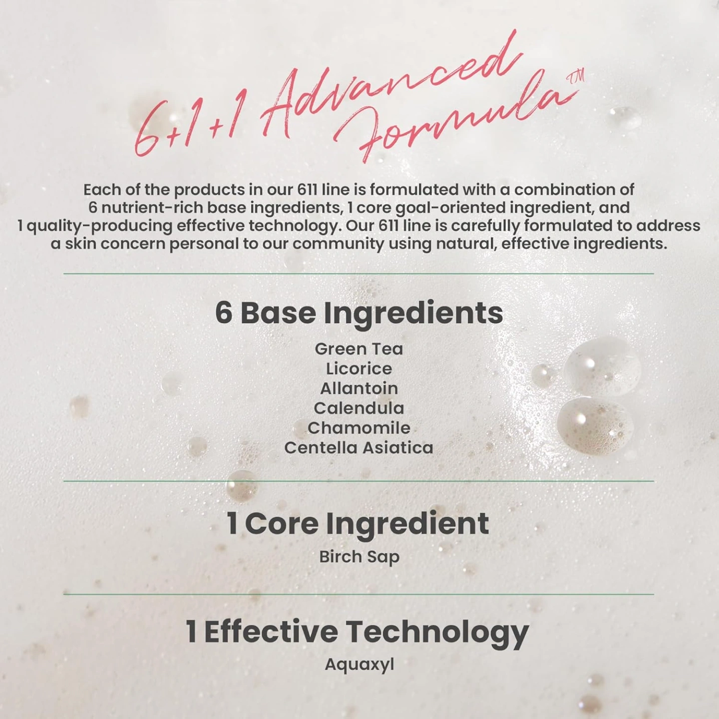 Water, Glycerin, Sodium Cocoyl Isethionate, Sodium Methyl Cocoyl Taurate, Potassium Cocoyl Glycinate, Coco-Betaine, Butylene Glycol, Potassium Cocoate, Sodium Chloride, Potassium Benzoate, Polyquaternium-67, Xylitylglucoside, Citric Acid, Anhydroxylitol, Propanediol, Xylitol, Betula Platyphylla Japonica Juice, Glucose, Camellia Sinensis Leaf Extract, Disodium EDTA, Glycyrrhiza Glabra (Licorice) Root Extract, Agrimonia Eupatoria Extract, 1,2-Hexanediol, Centella Asiatica Extract, Dipropylene Glycol, Allantoin, Perilla Frutescens Leaf Extract, Saponaria Officinalis Extract, Sodium Acetate, Pentylene Glycol, Calendula Officinalis Flower Extract, Kigelia Africana Fruit Extract, Caprylyl Glycol, Natto Gum, Sodium Hyaluronate, Chamomilla Recutita (Matricaria) Flower Extract, Ethylhexylglycerin, Hydroxycinnamic Acid, Rutin