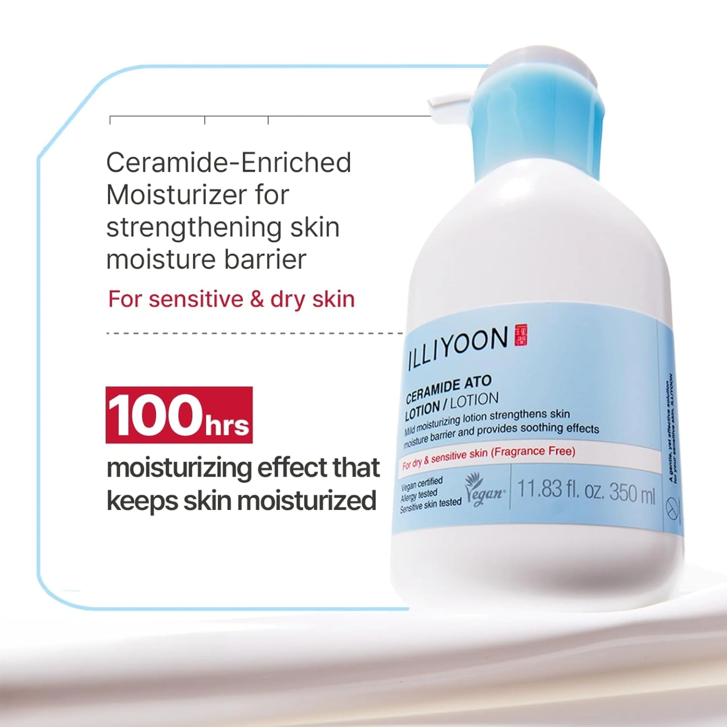 ILLIYOON’s Ceramide Ato Lotion offers ample daily hydration with moisturizing and barrier-repairing glycerin, shea butter and 32.7ppm of ceramide. The vegan-friendly formula is hypoallergenic and free of mineral oils, artificial colors, fragrances, parabens, PEG surfactants, triethanolamine and imidazolidinyl urea.