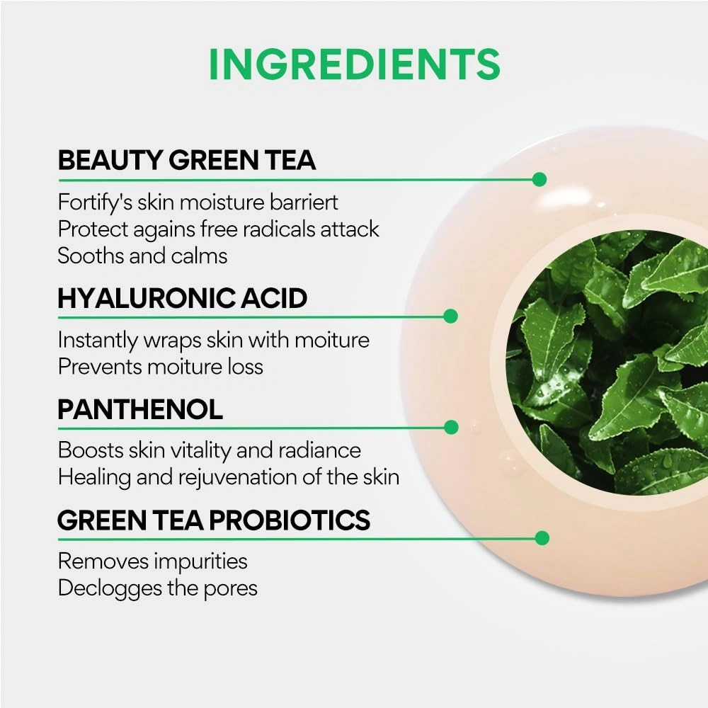 Formulated with Beauty Green Tea™, which includes 1.67 times more Theanie than usual green tea extract, and five kinds of hyaluronic acid to maintain oil-moisture balance of the skin.