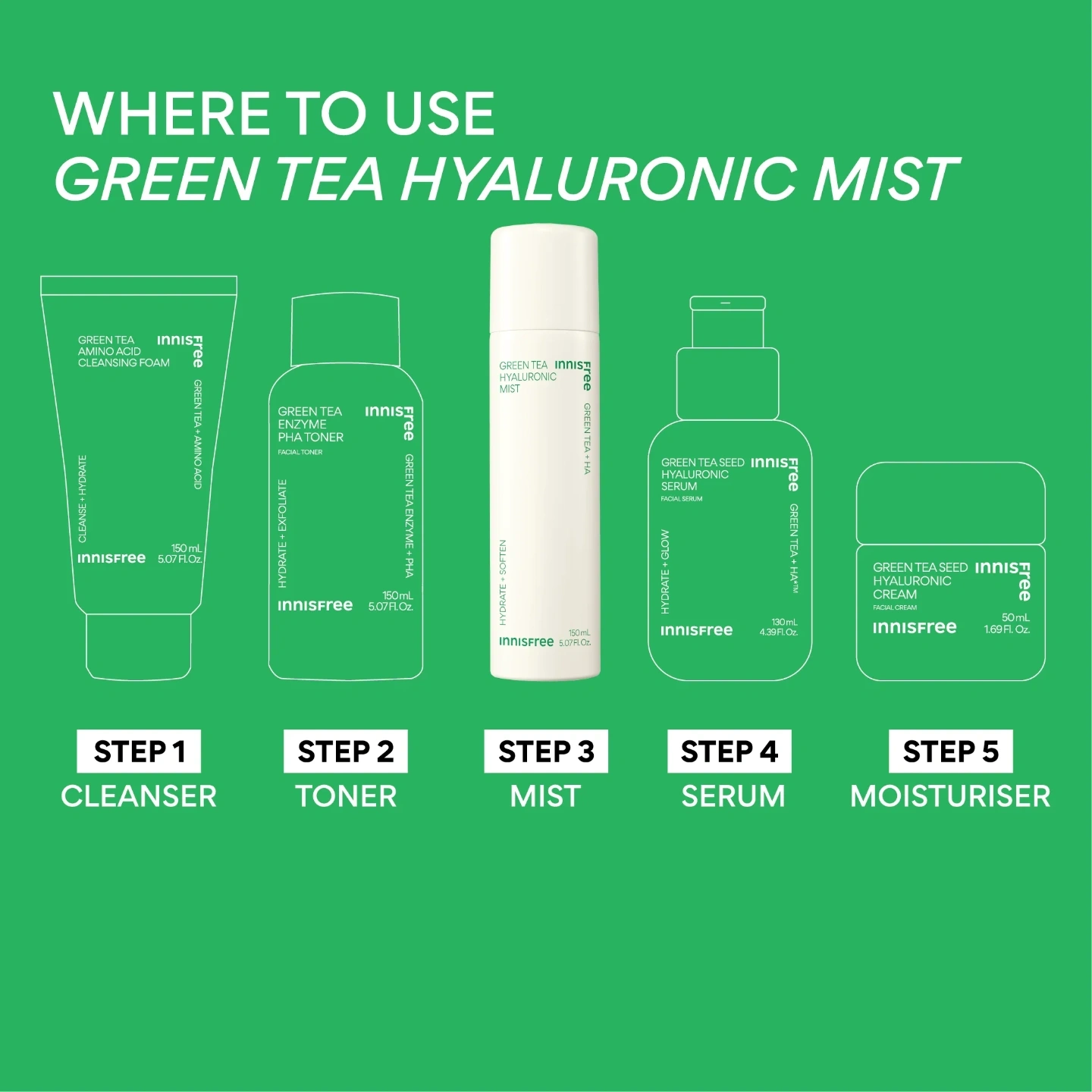 Carefully selected from more than 3,300+ green tea varieties, INNISFREE’s Beauty Green Tea™ is especially unique.