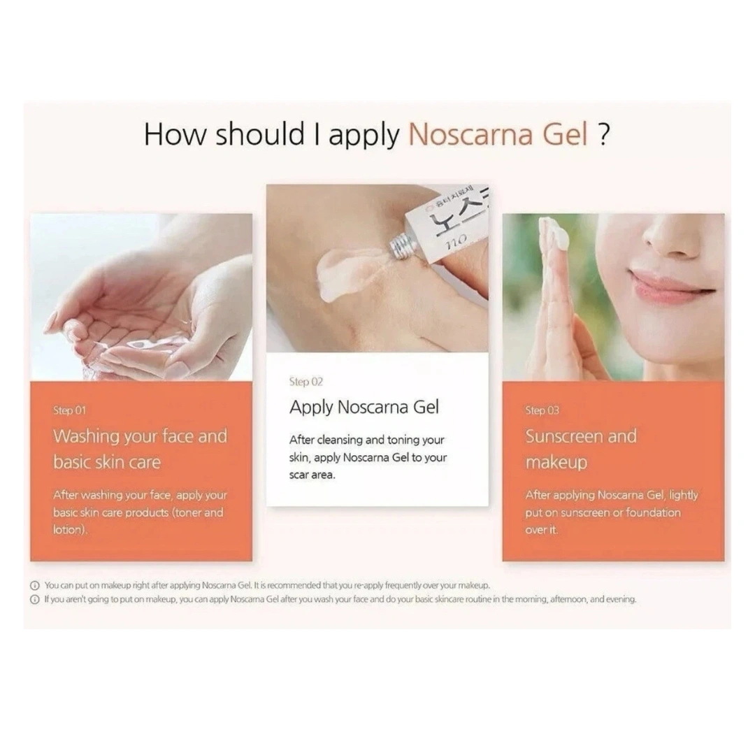 Noscarna Acne Scars Removal Gel is a topical treatment designed to reduce the appearance of acne scars and other types of scars. It contains a blend of active ingredients that work together to soften and flatten scar tissue, improve skin texture, and promote healing.