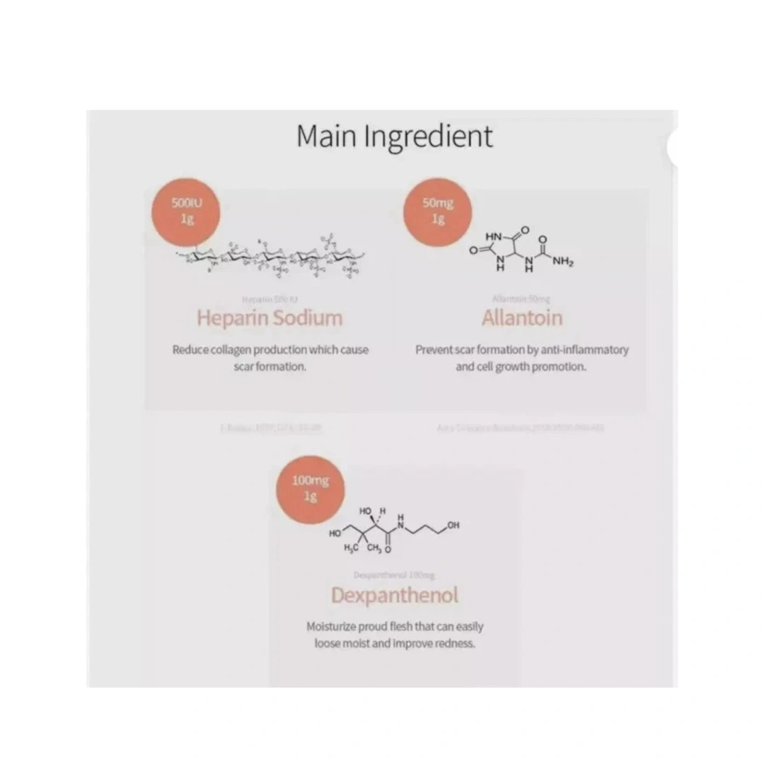 Heparin Sodium: An anticoagulant that helps to prevent blood clots and improve blood circulation, which can aid in scar healing.