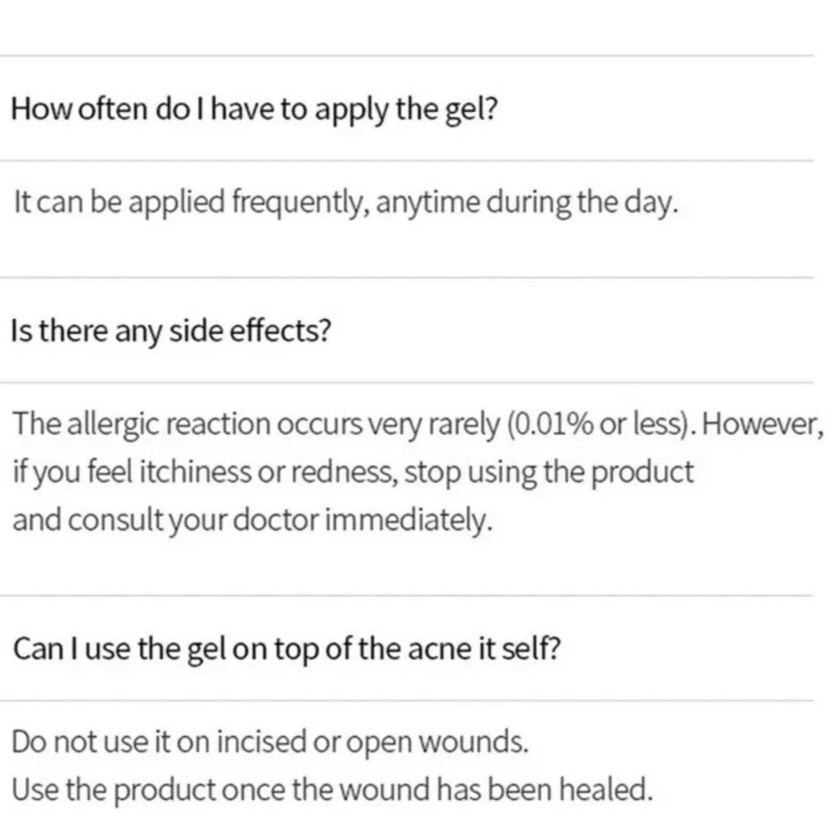 Reduces the appearance of acne scars: The gel helps to soften and flatten raised scar tissue, making acne scars less noticeable.